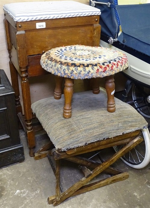 2 upholstered stools, and a sewing cabinet